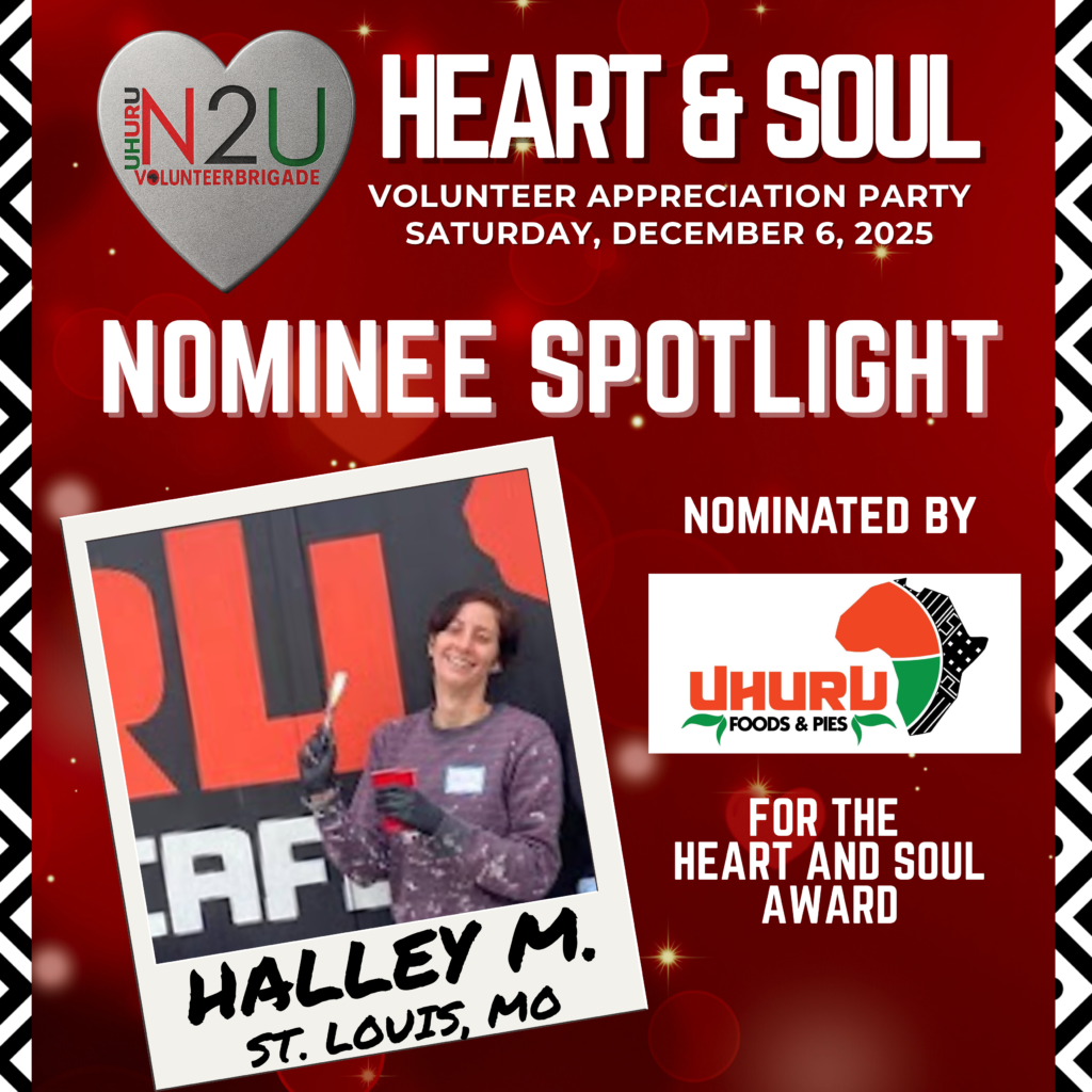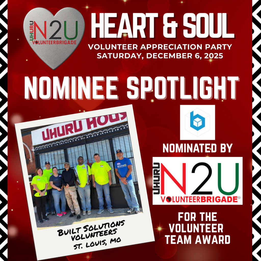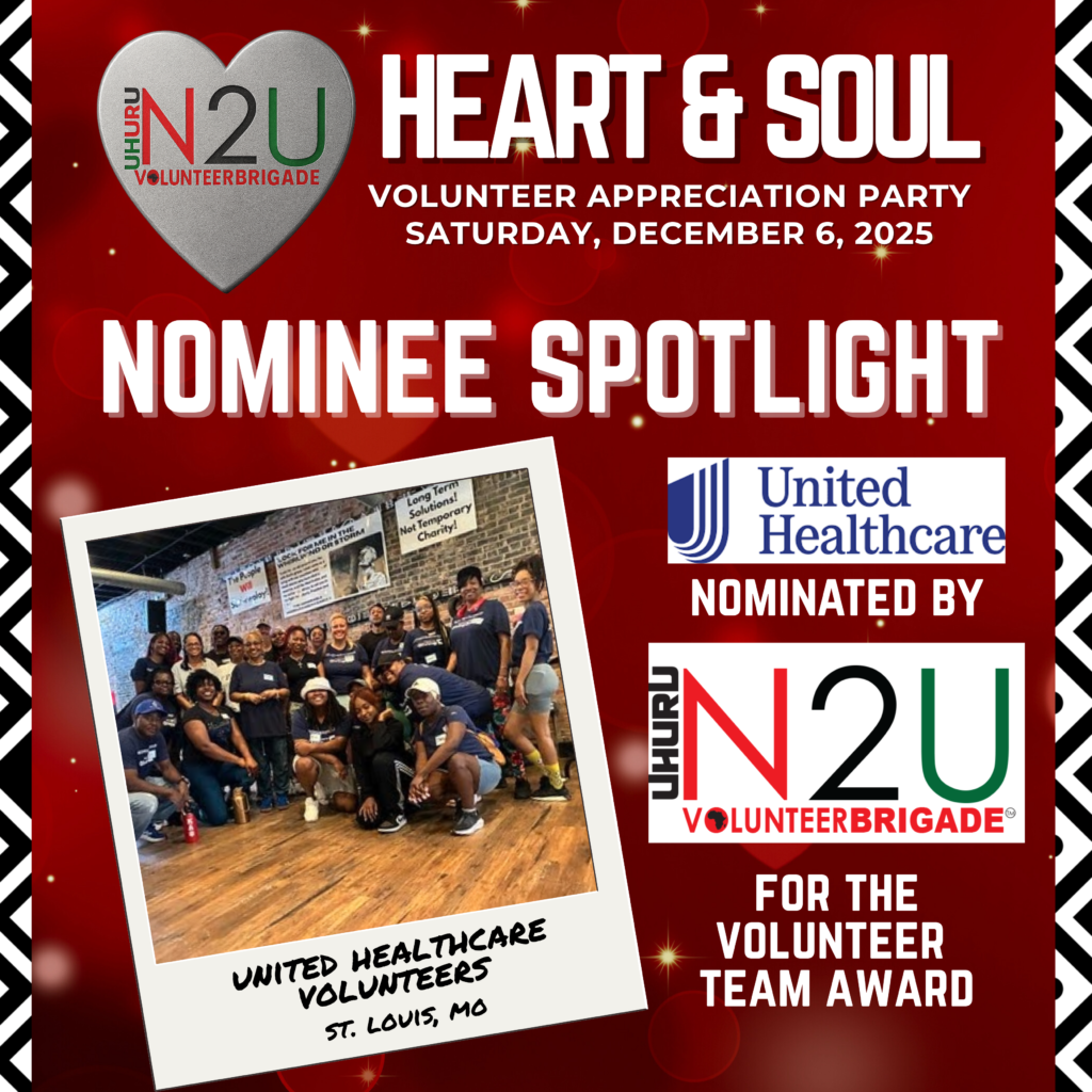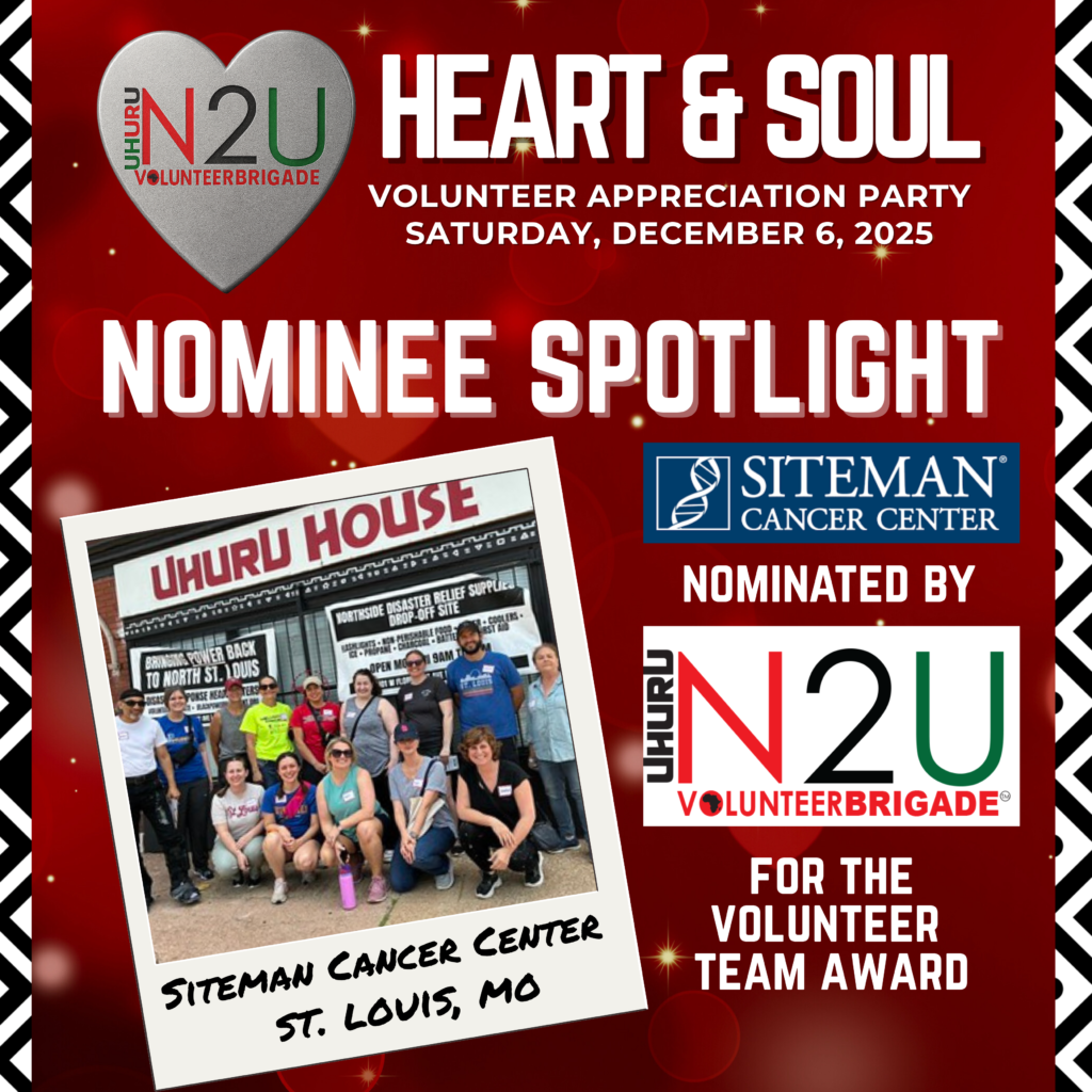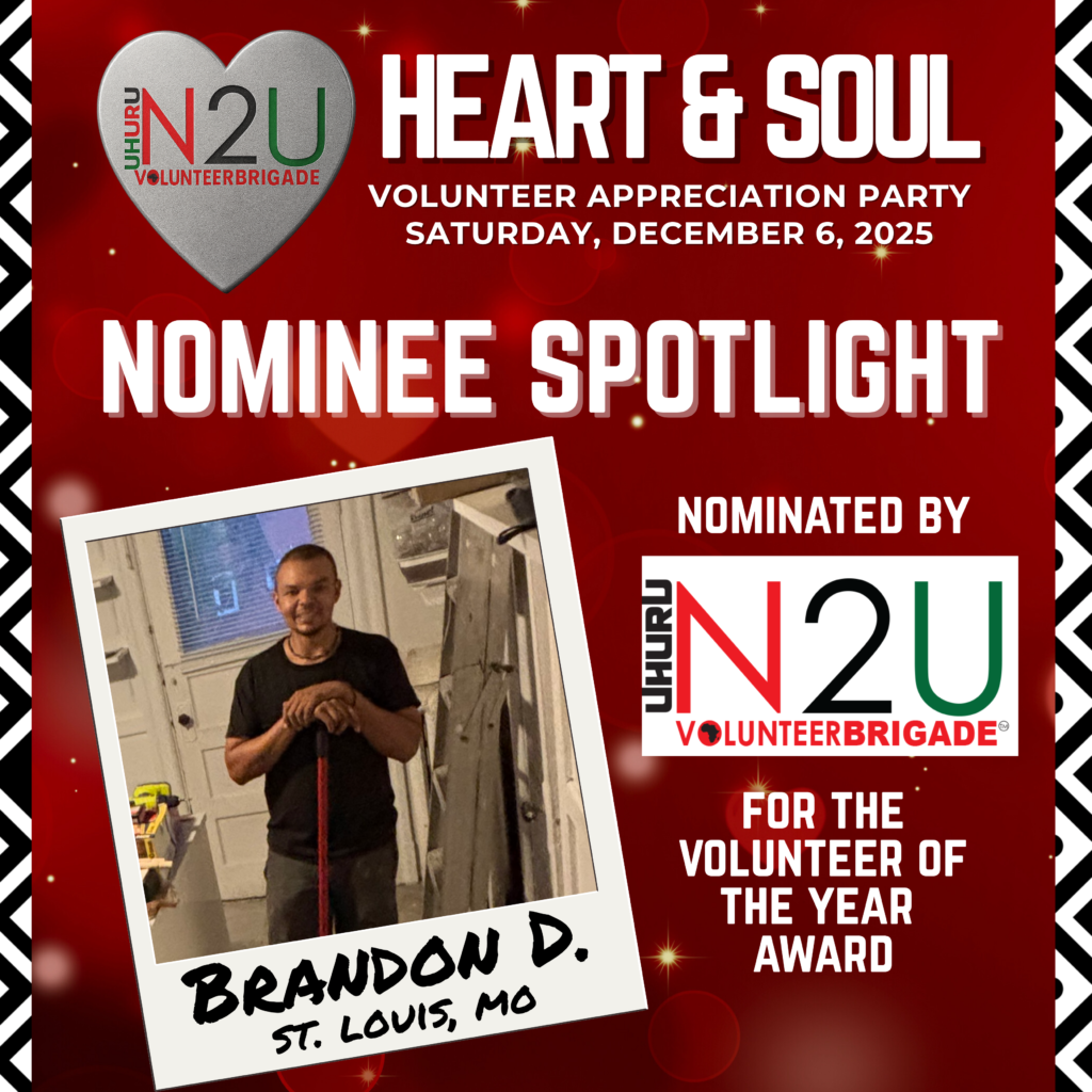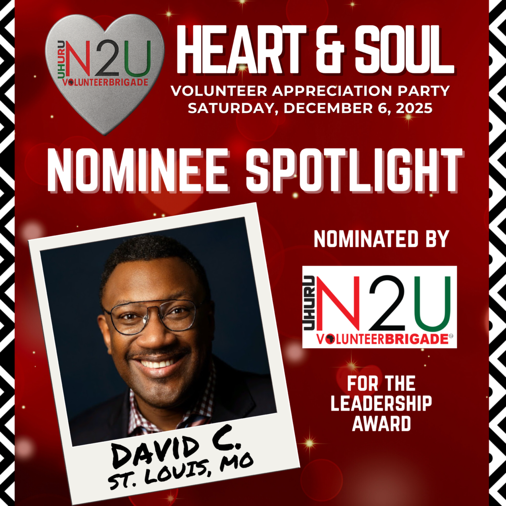 The 4th Annual Uhuru N2U “Heart and Soul” Volunteer Appreciation party is coming up soon, Saturday, December 6th, 2025 at 3 pm CT. This year has seen a record-breaking number of volunteer nominees for the annual volunteer award categories. Over 50 nominations have been received and all reflect amazing work done by our incredible volunteers! Below we name each category along with pictures of the nominees and who nominated them. Click here to register for this event. Attend in-person in St. Louis, MO or St. Petersburg, FL, or attend remotely via Zoom.
