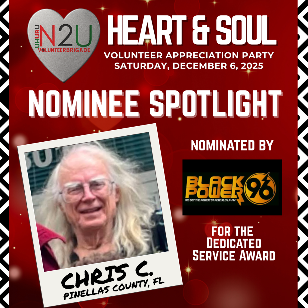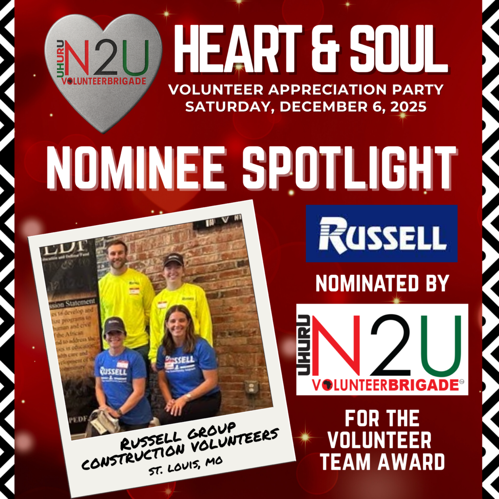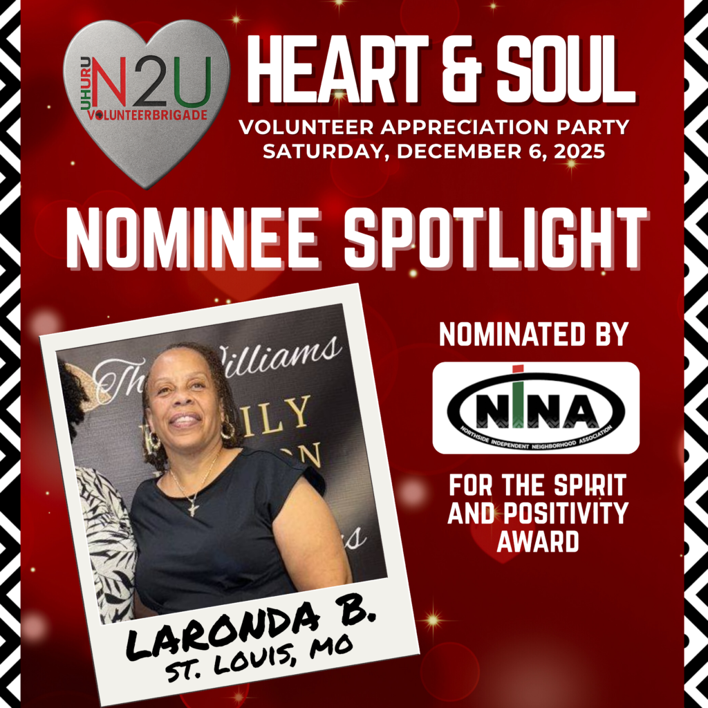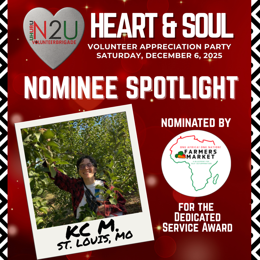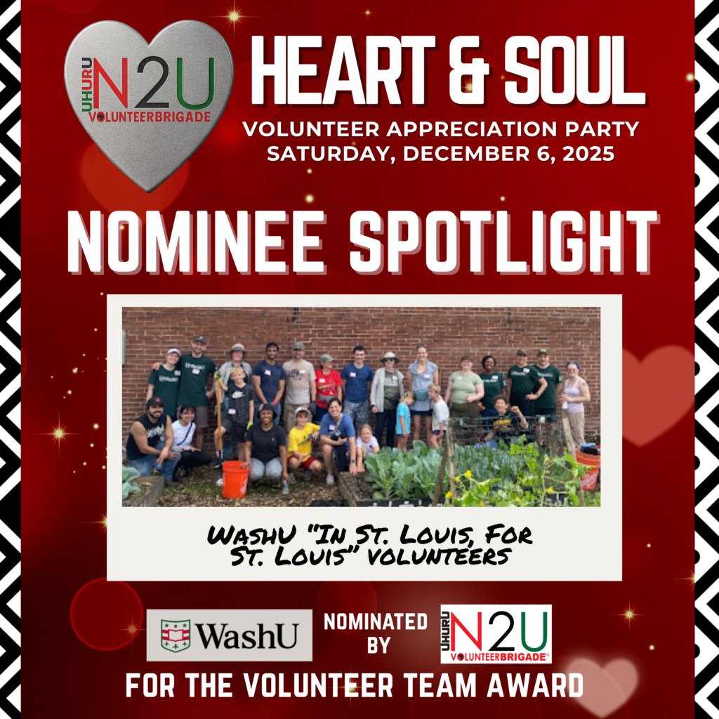 The 4th Annual Uhuru N2U “Heart and Soul” Volunteer Appreciation party is coming up soon, Saturday, December 6th, 2025 at 3 pm CT. This year has seen a record-breaking number of volunteer nominees for the annual volunteer award categories. Over 50 nominations have been received and all reflect amazing work done by our incredible volunteers! Below we name each category along with pictures of the nominees and who nominated them. Click here to register for this event. Attend in-person in St. Louis, MO or St. Petersburg, FL, or attend remotely via Zoom.