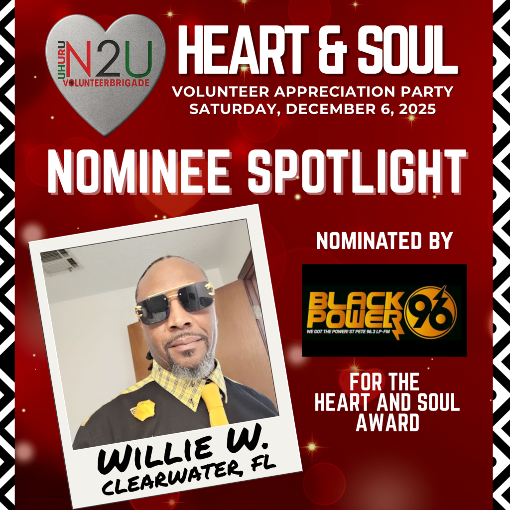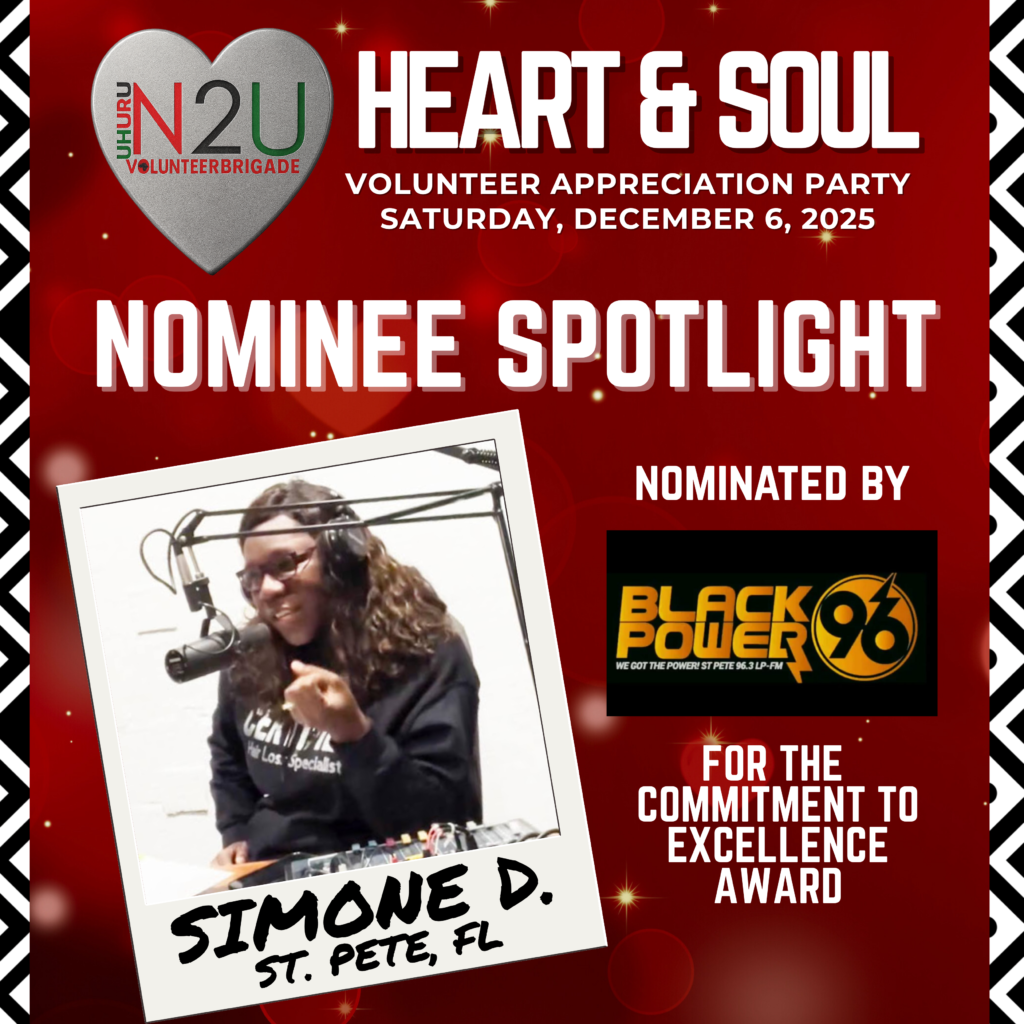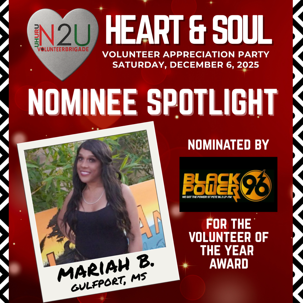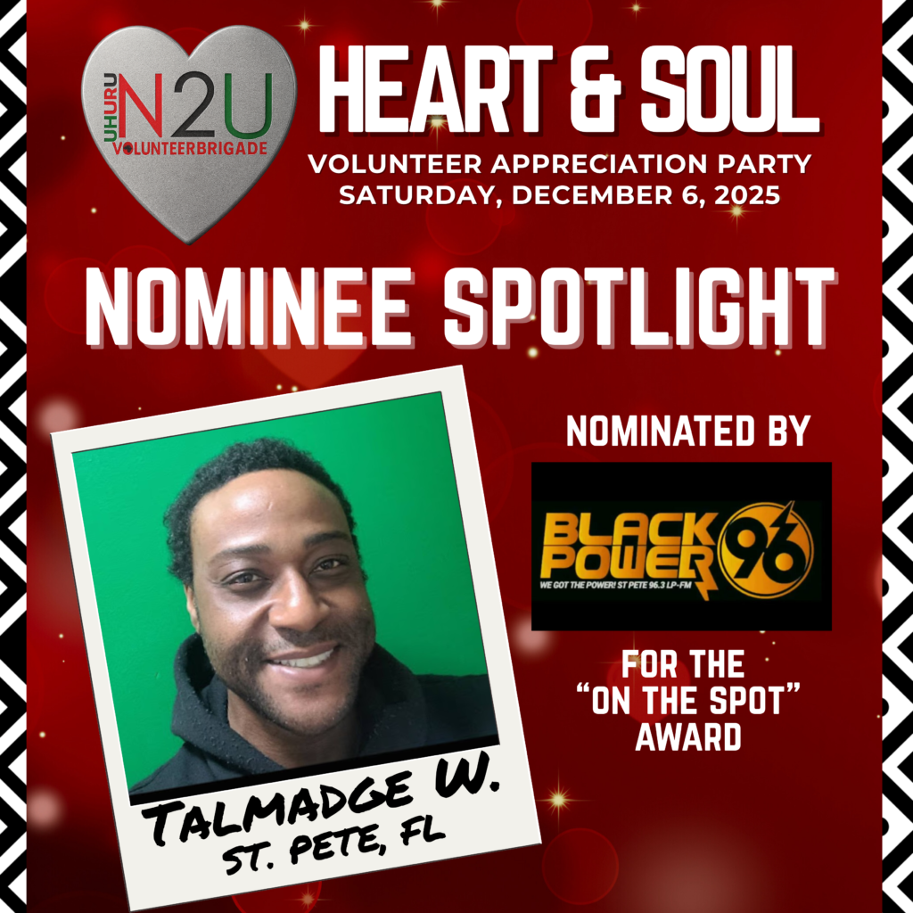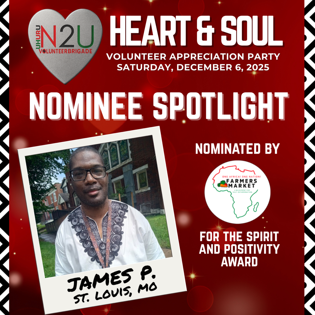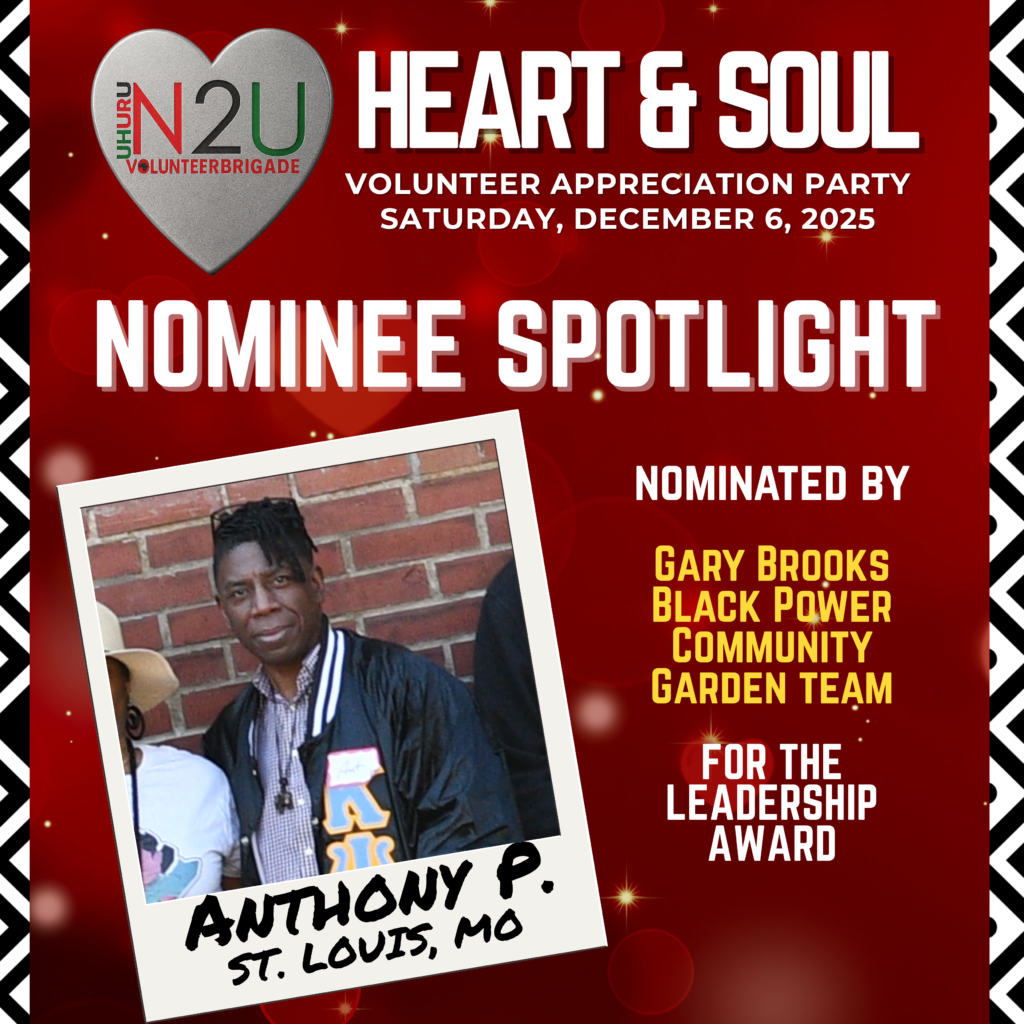 The 4th Annual Uhuru N2U “Heart and Soul” Volunteer Appreciation party is coming up soon, Saturday, December 6th, 2025 at 3 pm CT. This year has seen a record-breaking number of volunteer nominees for the annual volunteer award categories. Over 50 nominations have been received and all reflect amazing work done by our incredible volunteers! Below we name each category along with pictures of the nominees and who nominated them. Click here to register for this event. Attend in-person in St. Louis, MO or St. Petersburg, FL, or attend remotely via Zoom.