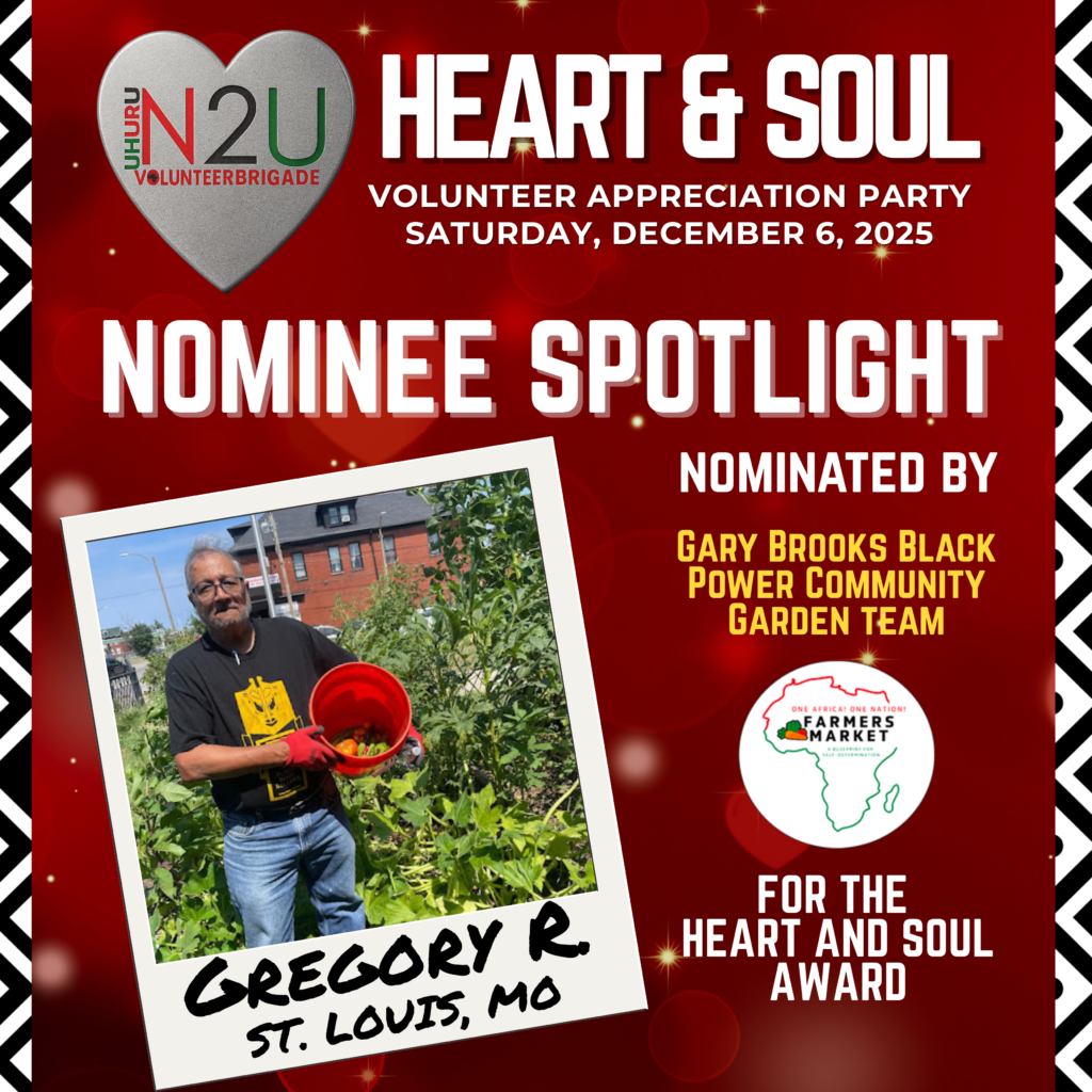 Gregory R. has been with the One Africa! One Nation! Farmers Market from the very beginning, bringing knowledge, culture, and community to every market. Rain or shine, Gregory shows up—not only to vend, but to help with breakdown, loading the truck, and supporting the market team. His consistency and positive energy make him an essential part of the market’s rhythm and spirit. Beyond his role as a vendor, Gregory contributes thoughtful ideas to improve the market’s operations, often attending vendor meetings and offering creative solutions rooted in experience and care. Recently, he joined the International People’s Democratic Uhuru Movement (InPDUM) as the Economic Coordinator, deepening his commitment to building African economic power. At every Sunday rally, we are reminded of his gift for storytelling—uplifting, teaching, and inspiring those around him. Gregory truly embodies the heart and soul of our community, making everyone better through his presence, wisdom, and dedication.