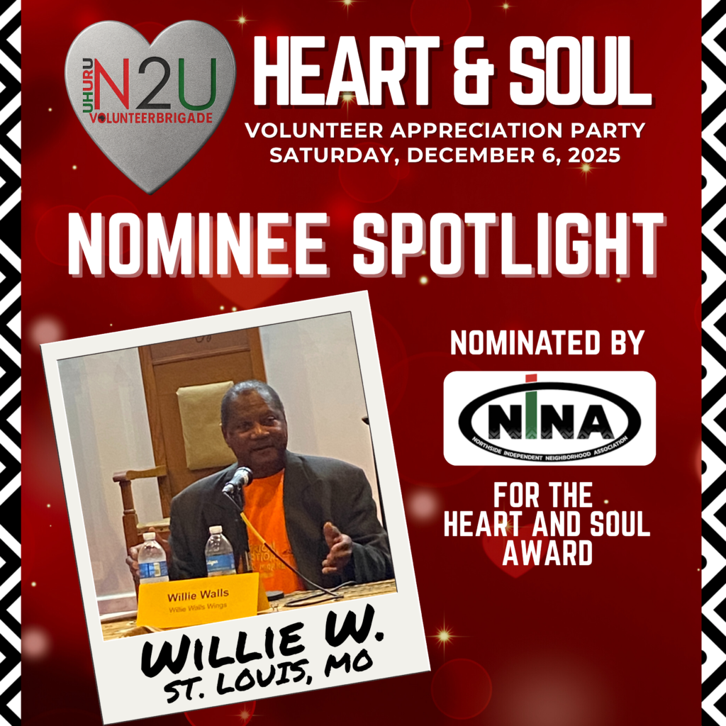 Debra P. is a mother, grandmother, NINA member and long-time St. Louis resident who played a critical role in organizing the “Northside Community Block Party” in August, 2025. Debra attended weekly planning meetings, organized donations of gifts for the children and adults attendees, coordinated the Children’s Area inside of Karibu Outdoor Space that included face painting and the ever popular bouncy house, and had a lemonade booth that was a big hit! Debra’s work ensured that neighborhood children were celebrated at the block party. Her efforts supported NINA’s goal of upholding the welfare, safety and wellbeing of the community by making sure the children were safe and everyone had a good time at an event that celebrated the strength and resilience of the African community. Therefore, NINA nominates Debra Perkins for the Spirit and Positivity Award!