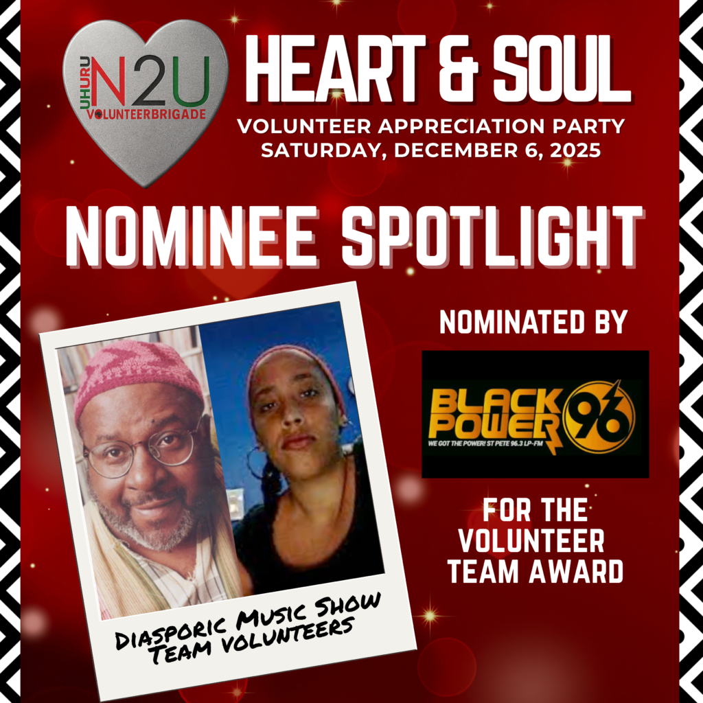 The Diasporic Music Show team embodies teamwork, creativity, and consistency in volunteer broadcasting. Led by host and music historian Jalali, with co-host Malinda, the team delivers engaging weekly episodes featuring curated playlists, meaningful discussions, and insightful guests. DJ Assata enriches each show by researching music tied to significant dates, honoring artists’ birthdays, anniversaries, and cultural milestones, and keeping the program timely and educational. Their dedication has built a loyal, supportive listener base. This year, Malinda expanded the show’s reach through strategic promotions, launching a website, and sharing episodes across multiple platforms. United by a shared passion for music, history, and community, the Diasporic Music Show team stands as one of Black Power 96 Radio’s most inspiring and impactful volunteer collaborations.