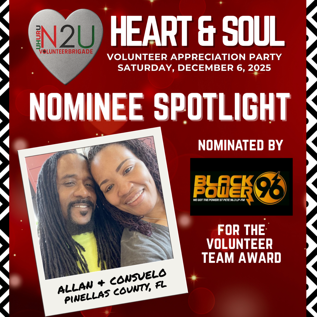 Allan and Consuelo are a remarkable husband-and-wife team whose creativity, generosity, and leadership make them invaluable members of the Black Power 96 family. Allan, an author and Local Going Global contest-winning musical artist, and Consuelo, owner of Exquisite Touch Beauty Salon, have founded nonprofits that serve local families and youth. They partnered with Black Power 96 for a back-to-school event, bringing the station to DJ and engage the community. Allan also produced a touching mini-documentary about DJ Eddie, highlighting his story and contributions. Beyond that, they have donated during fund drives and spoken at Pinellas County meetings and press conferences in support of the station’s mission. Their partnership embodies unity, purpose, and unwavering community commitment.